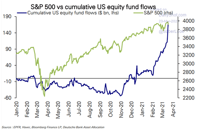 Presumiblemente en próximas semanas los flujos de fondos rotarán desde la bolsa hacia los bonos. Los últimos en llegar como de costumbre sufrirán las consecuencias y observando los flujos de fondos que han entrado en renta variable en las últimas semanas, muchos inversores afrontan un futuro cuando menos aventurado.
