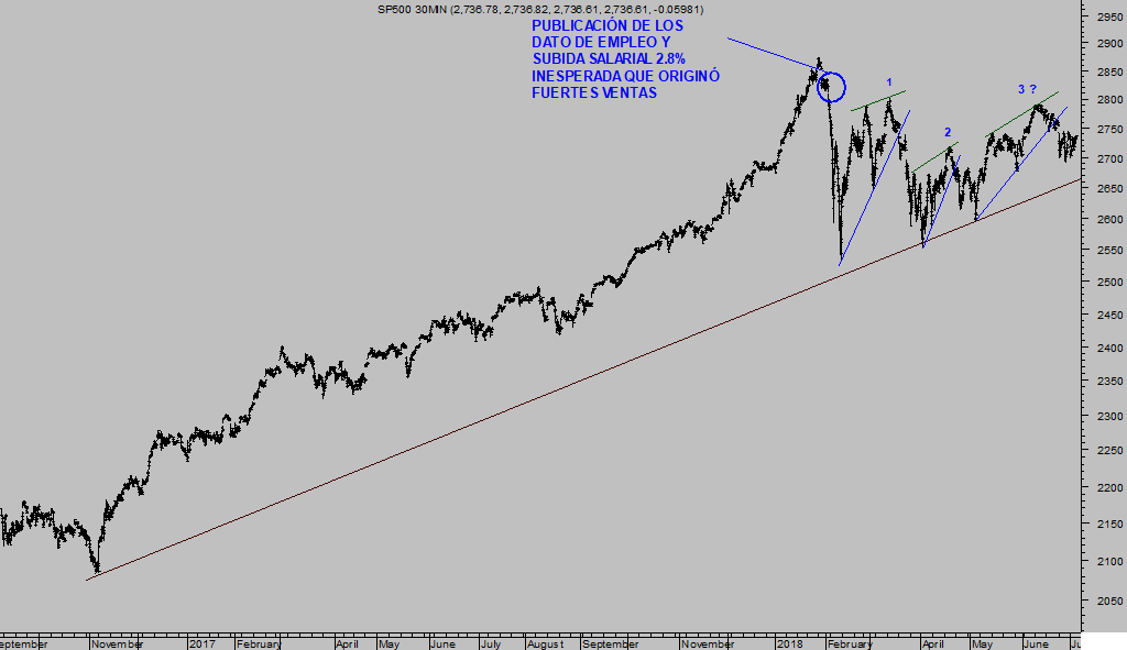 El consenso estima un incremento salarial por hora trabajada en junio del 2.8% y recordemos que la excusa que justificó el proceso de ventas de febrero fue precisamente la publicación, el día 2 de febrero, de un dato de salarios subiendo al 2.8% anual.