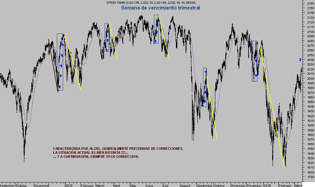 Respecto al impacto de los vencimientos trimestrales en la marcha de las cotizaciones, la siguiente imagen vale más que mil palabras.