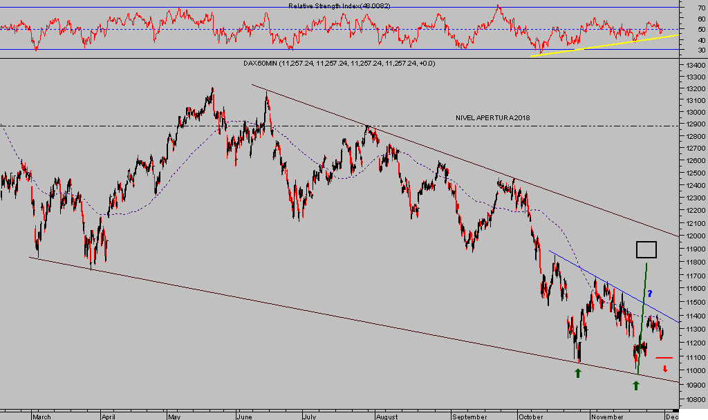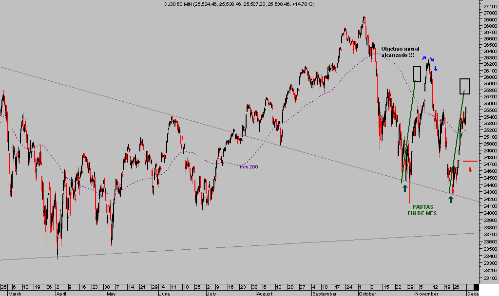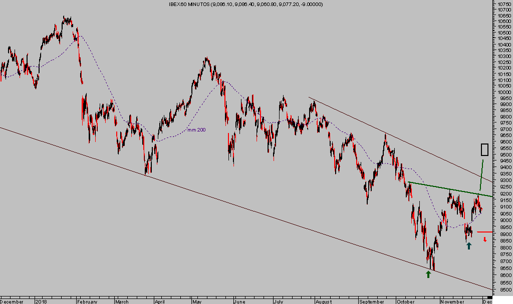 Un impulso con el que venimos trabajando como escenario técnico más probable desde el pasado 20 de noviembre, coincidiendo con los mínimos de esa sesión. El objetivo inicial de subida, proyectado entonces para el actual tramo en curso, aún no ha sido alcanzado, vean gráfico: