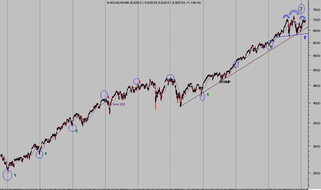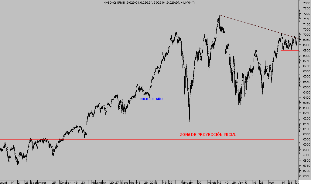 La pauta del tecnológico Nasdaq, observada en combinación con su importante ciclo (trazos verticales del gráfico siguiente) y la estacionalidad, sugieren prudencia.
