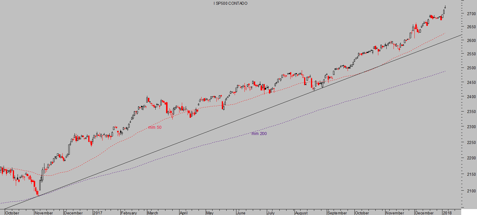 Un día más, una sesión bursátil más y un cierre más en positivo para las bolsas americanas. Después de encadenar todos y cada uno de los meses del pasado año en positivo, registrando así un nuevo hito histórico, el S&P500 sumó en la sesión de ayer otro cierre positivo del +0.4% hasta cerrar en 2.724 puntos…