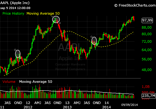 La respuesta del mercado al lanzamiento de los nuevos terminales fue como en años anteriores, cuando nada más presentar nuevos modelos, el precio de la acción terminó la sesión a la baja anunciando el principio de correcciones de distinta profundidad.