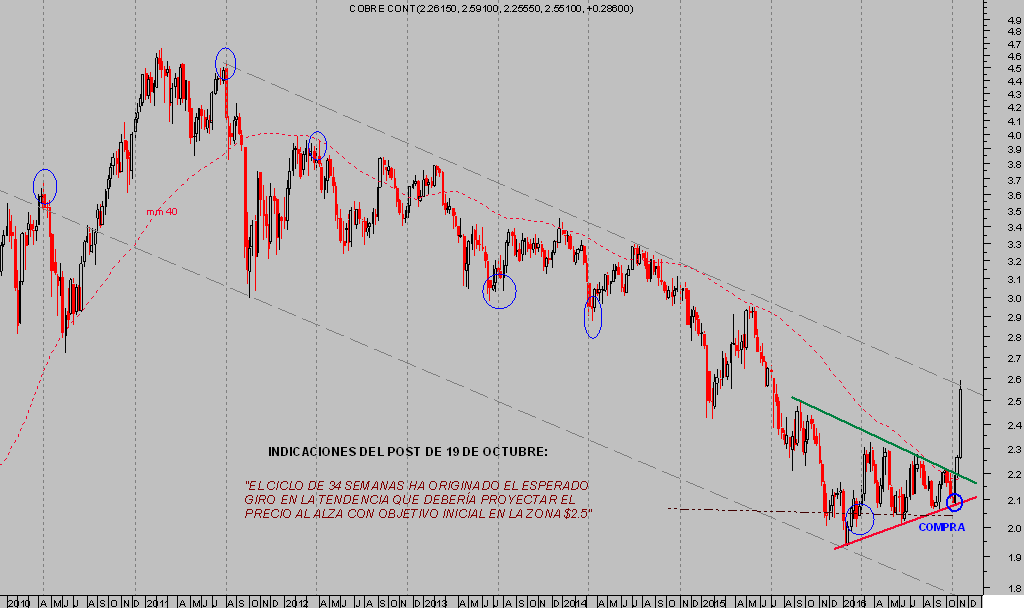 Cambiando de asunto, el Doctor Cobre ha virado su tendencia de acuerdo con las previsiones y estrategia que en sólo dos semanas nos ha proporcionado la rentabilidad esperada del +17.5%, frente a un riesgo máximo de la operación del 3%.