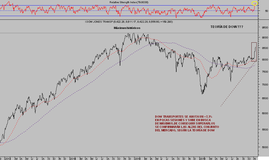La importancia de una eventual superación de los máximos previos, de 2015, es clave para la salud del mercado ya que confirmaría los máximos del Dow Industriales y en su caso del SP500, desde la perspectiva de la legendaria Teoría de Dow.