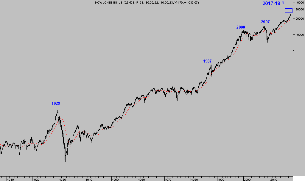 Destacando hitos o niveles record de mercado, observen el alcanzado por el Dow en la siguiente secuencia.