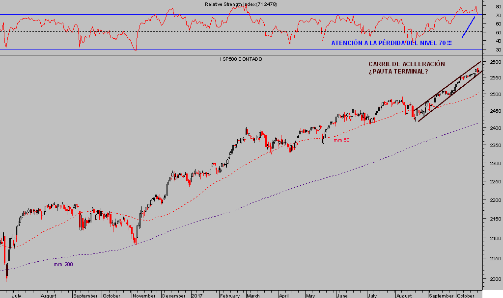 El índice S&P500 subió ligeramente en la sesión de ayer, en esta ocasión sin conseguir nuevos máximos, sin apenas volatilidad ni volumen de participación y respetando la pauta técnica en curso y las referencias técnicas de control que esperamos sean puestas a prueba más pronto que tarde.