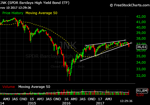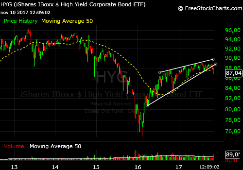 Los denominados Bonos High Yield (HYG) y Bonos Junk (JNK) o basura , la semana pasada cayeron de precio de manera considerable, dañando la estructura de la pauta técnica de manera importante.