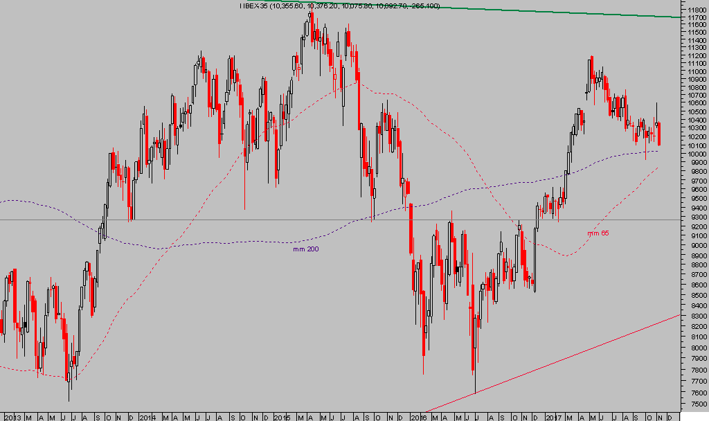 También debilidad y continuidad de la corrección del mercado español, con el IBEX perforando la referencia de control de precios que ha soportado cualquier intento de caída en las últimas semanas, situada en 10.100 puntos.