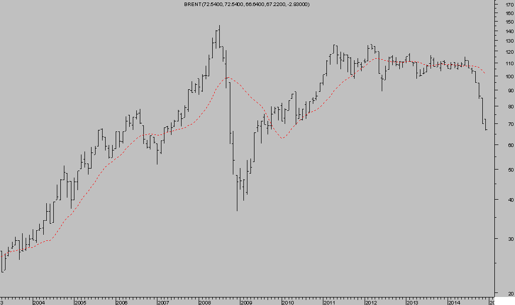 ¿Subirá el precio a $100 en 15 meses?, con la OPEP produciendo hoy alrededor de 30 millones de barriles día, y sin intención de reducir oferta, y USA casi 10 millones de barriles día, y con esperanzas de aumentar aún más la oferta, esperar un desenlace de precios tan positivo como el acontecido a partir del suelo de 1.986, y proyectar una pronta recuperación de precios del barril hacia los $100, puede resultar un ejercicio ocioso.