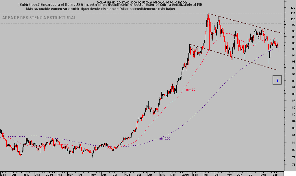 La fortaleza del Dólar es un asunto peliagudo y condenado a continuar por los esperados flujos compradores de «refugio», mal entendido, dada la desconfianza que generan los emergentes. Un Dólar fuerte castiga a la economía USA.