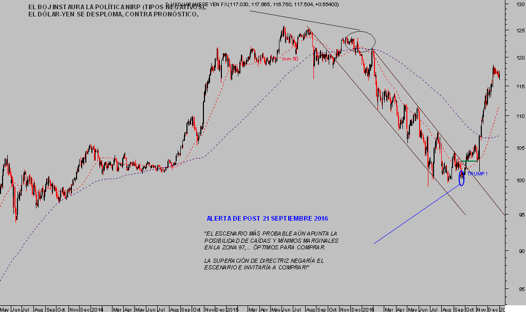 Otra gran oportunidad brindada por las lecturas del sentimiento inversor según lecturas de Commitment of Tradres,, siempre referidas a la predisposición de los inversores de carácter más especulador, que son los que suelen equivocarse!, fue sobre la paridad de divisas Dolar Yen.
