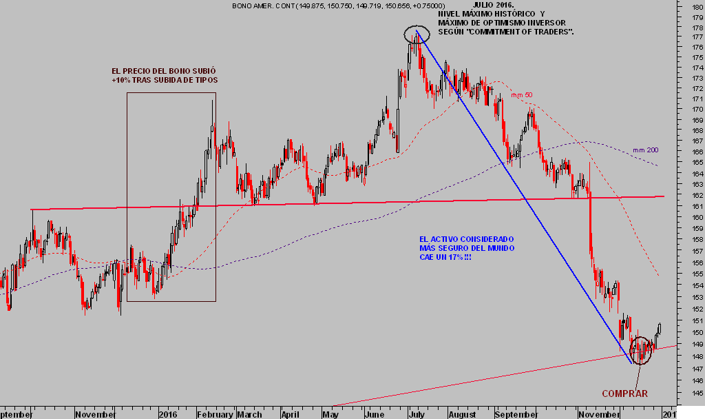 En verano se registraron máximos de optimismo inversor, vía COT, en el T BOND que permitieron adoptar la posición contraria, vean: