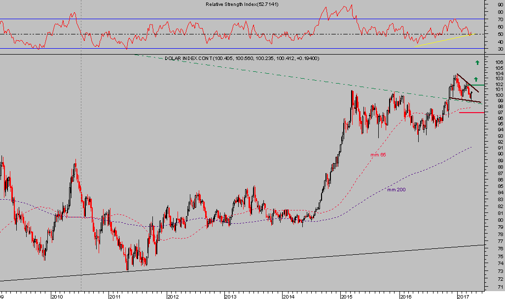 El Dólar Index ha desplegado una pauta de consolidación típica desde los máximos de enero y tras respetar las referencias de soporte está repuntando en precio y retomando la tendencia alcista principal.