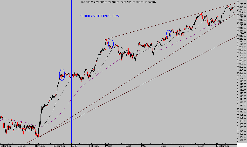 Es una evolución contraria al propósito de la FED de elevar tipos de interés 3 veces en este 2017. En las reuniones del FOMC de diciembre de 2016, marzo y junio de este 2017, decidieron elevar tipos.
