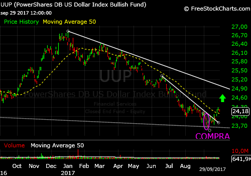 Contrariamente, el Dólar intenta salir de la zona de mínimos y presenta un aspecto técnico de interés…