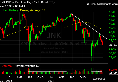 Los máximos del mercado de High Yield fueron registrados en mayo de 2013 y las debilidad que refleja su evolución desde junio de 2014 no justifica la pretendida estabilidad aludida por C. Lagarde.