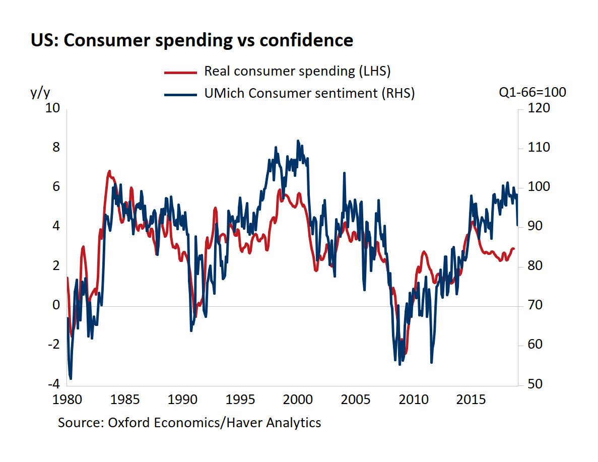 La confianza ha permanecido desconectada de la realidad desde la llegada de Trump, dos años en los que mejoraba mientras que el gasto en consumo perdía fuerza.