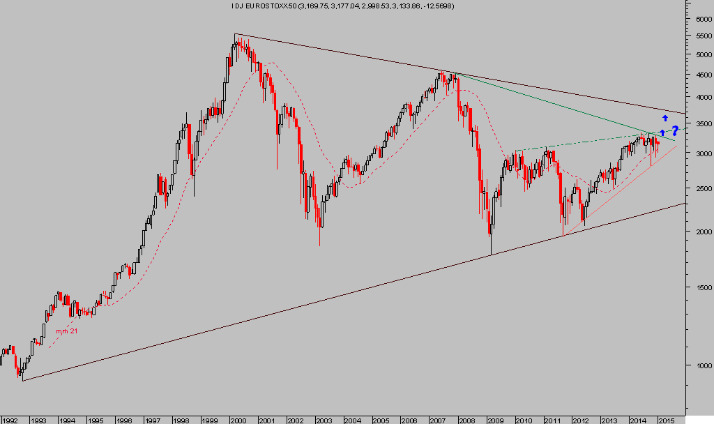 El mercado USA, sin embargo, no presenta igual aspecto técnico y el desacoplamiento entre ambos (S&P y Eurostoxx) previsiblemente tenderá a agudizarse en próximos meses, con el inversor USA pendiente de los esperados avances en la normalización de política monetaria y el inversor EURO de la expansión monetaria masiva.