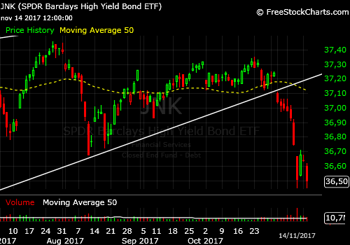 Observen las caídas acumuladas por el índice de bonos basura o JUNK en las últimas tres semanas: