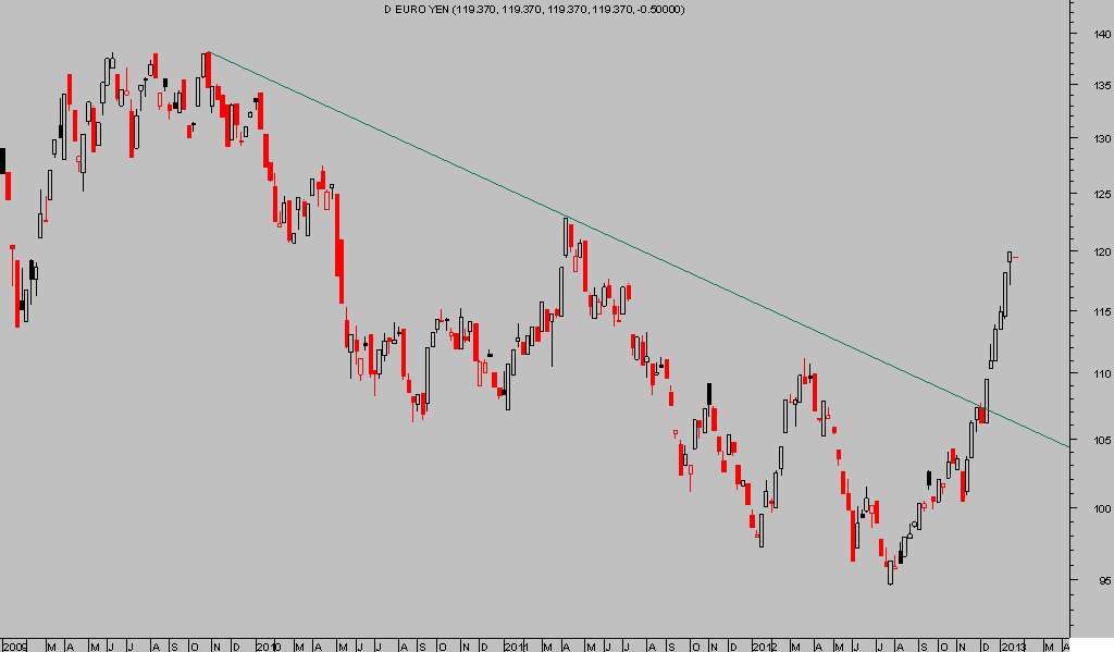 Muestra de ello es la ausencia de titulares citando la inminente desintegración del Euro en los últimos meses, tal como venía sucediendo anteriormente. También el comportamiento en su cruce contra las demás monedas, vean por ejemplo lo sucedido contra el Yen en pasadas semanas, subiendo un 25%.