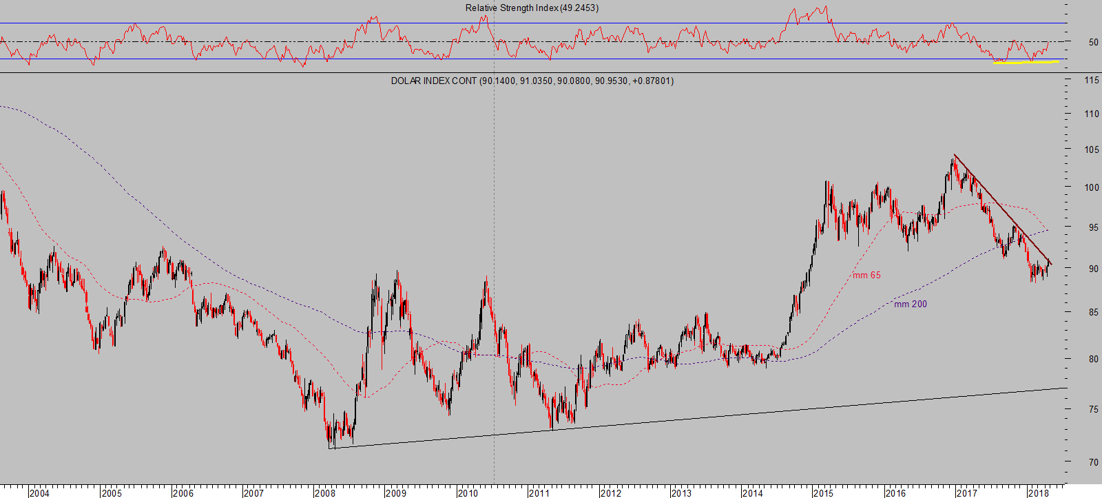 El Euro supone un 56% de la cesta de monedas que conforma el Dólar Index y por tanto su comportamiento se impone al resto, aunque esto también explicaría el motivo del largo periodo de rango lateral en zona de mínimos -máximos en el cruce Euro Dólar- iniciado el pasado mes de enero.