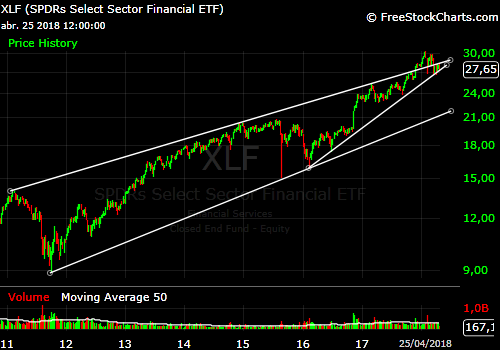 El aspecto técnico del sectorial bancario USA denota fragilidad en su estructura de precios y muy elevada probabilidad de caídas en próximas semanas. Sell in may?
