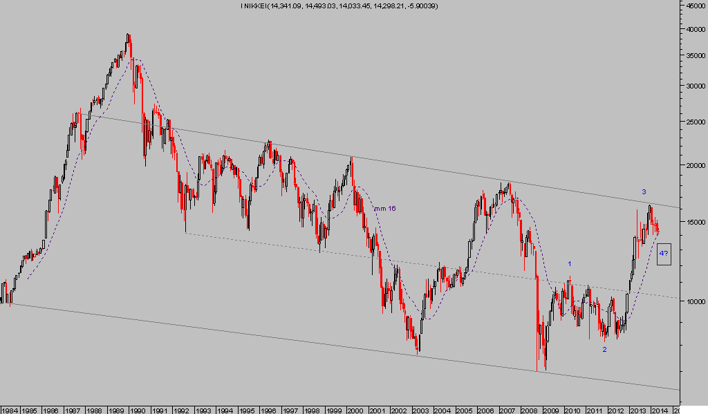 A pesar de lo cual, el índice de la bolsa japonesa, Nikkei 225, ha cerrado la sesión cayendo un 1.41% y en línea con nuestras expectativas y escenario más probable, comentado brevemente en el post del 23 de abril