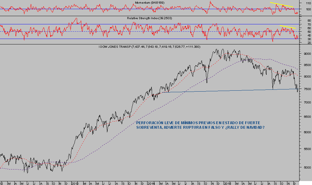 Respecto a las interioridades, citar como ejemplo el índice que desde hace meses tantas veces ha señalado divergencia bajista estructural y negado la presunta fortaleza de un mercado de acciones en máximos. El Dow Jones Transportes confirma debilidad pero está en proceso de muy probable desarrollo de trampa técnica de corto plazo.