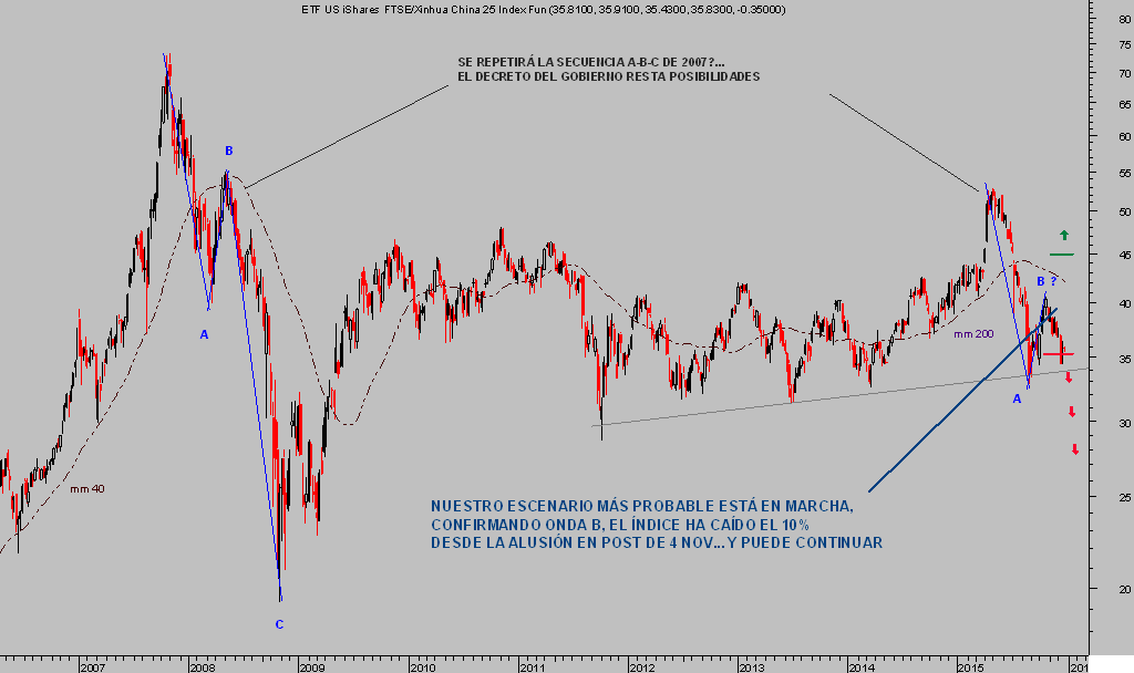 El dispar comportamiento que dibuja el ETF anterior respecto del propio índice de la bolsa de Shangai es notorio y muy interesante desde la perspectiva analítica y posibilidades operativas.