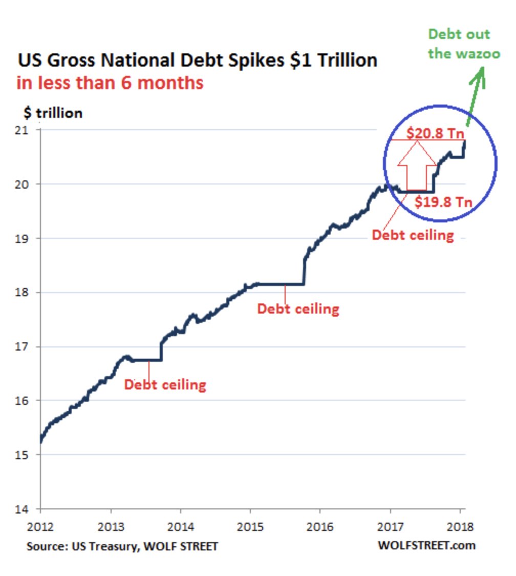 La demora pactada entre partidos para poder retrasar las negociaciones sobre el techo de deuda es una nueva patada adelante que se observa peligrosa por el ritmo de aumento de deudas, que han crecido UN BILLÓN de dólares en sólo 6 meses.