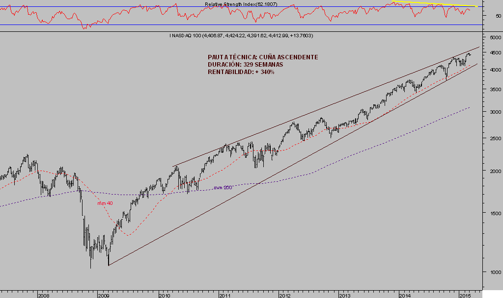 La imagen anterior, del sexto cumpleaños del S&P 500, se asemeja enormemente a la que presenta el Nasdaq, aunque con ventaja porcentual apreciable en favor de éste último.