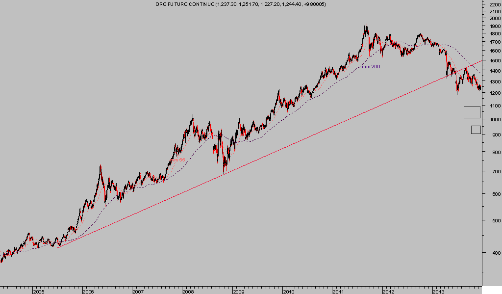 Observen que el objetivo de descenso con que trabajo -caja negra- permanece inalterado desde hace meses pero cabe la posibilidad incluso de un proceso de ventas desordenadas que proyecte al precio a un nuevo área de proyección -caja negra menor-.