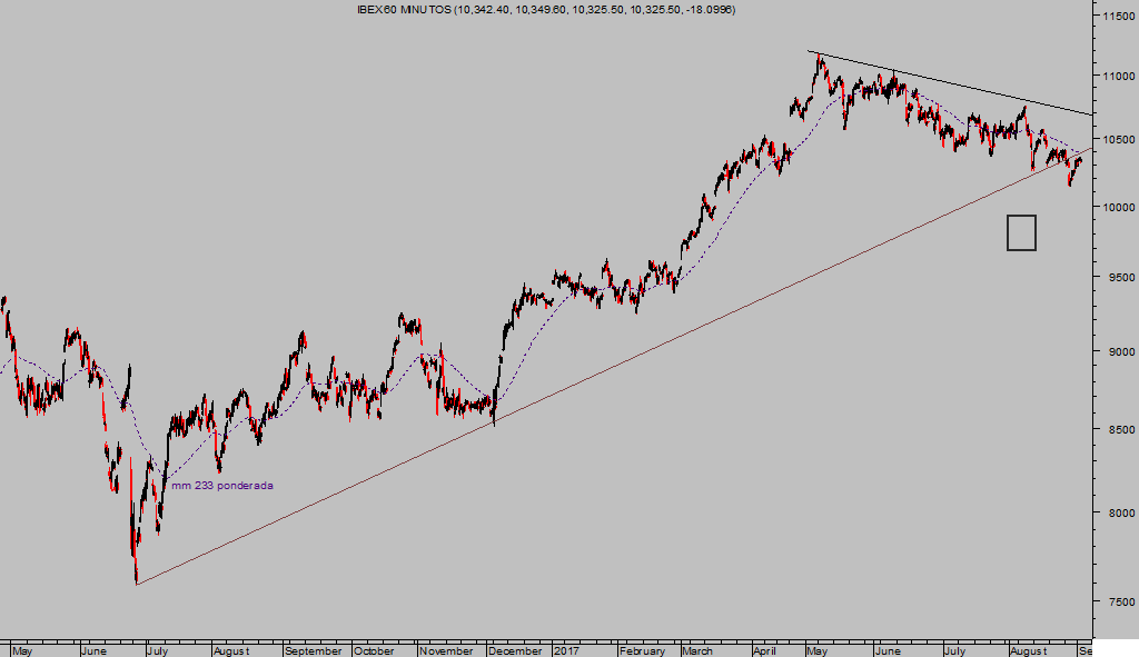 Las cajas negras señaladas en los posts de junio han sido prácticamente alcanzadas por los diferentes índices europeos en las últimas sesiones, vean gráficos del IBEX, DAX y Eurostoxx: