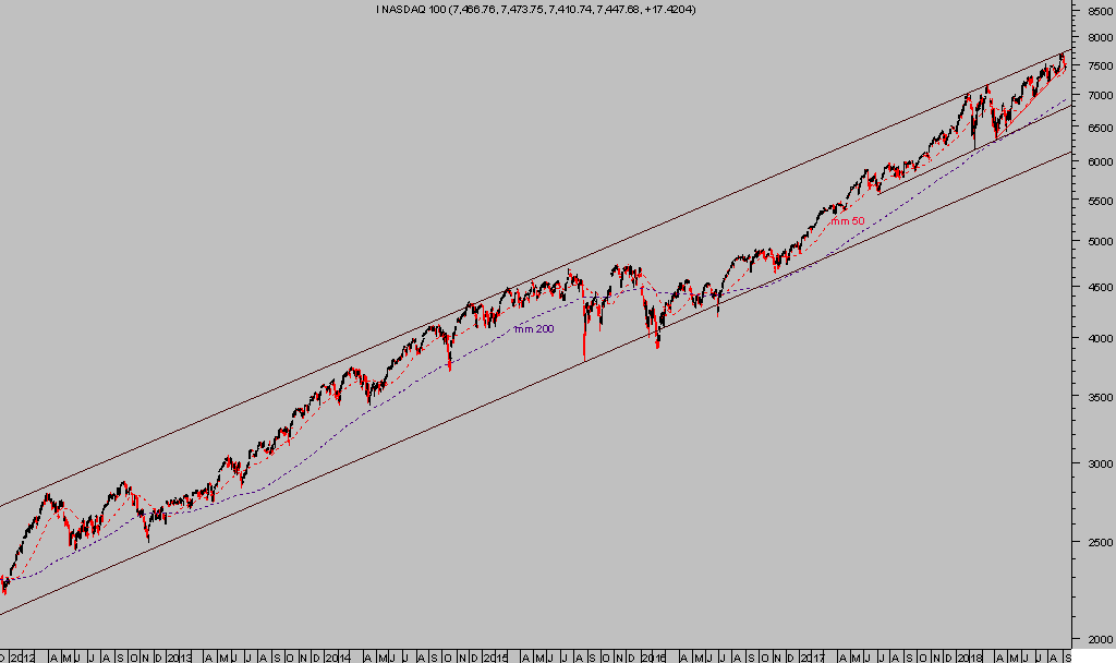 La ofensiva comercial puede terminar erosionando las relaciones y negocios tecnológicos americanos en China. El sector tecnológico USA, completamente dependiente de grandes valores como Apple es cada día más vulnerable y su aspecto técnico advierte agotamiento de la tendencia.