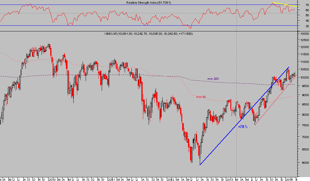 El pasado 17 de enero un post titulado «IBEX-35 BAJO LA LUPA TÉCNICA. INTERESANTE CONCLUSIÓN«, analizaba la situación y perspectivas del Ibex-35, advirtiendo la presencia de numerosos detalles de carácter técnico y cíclico apuntando a un inminente techo.