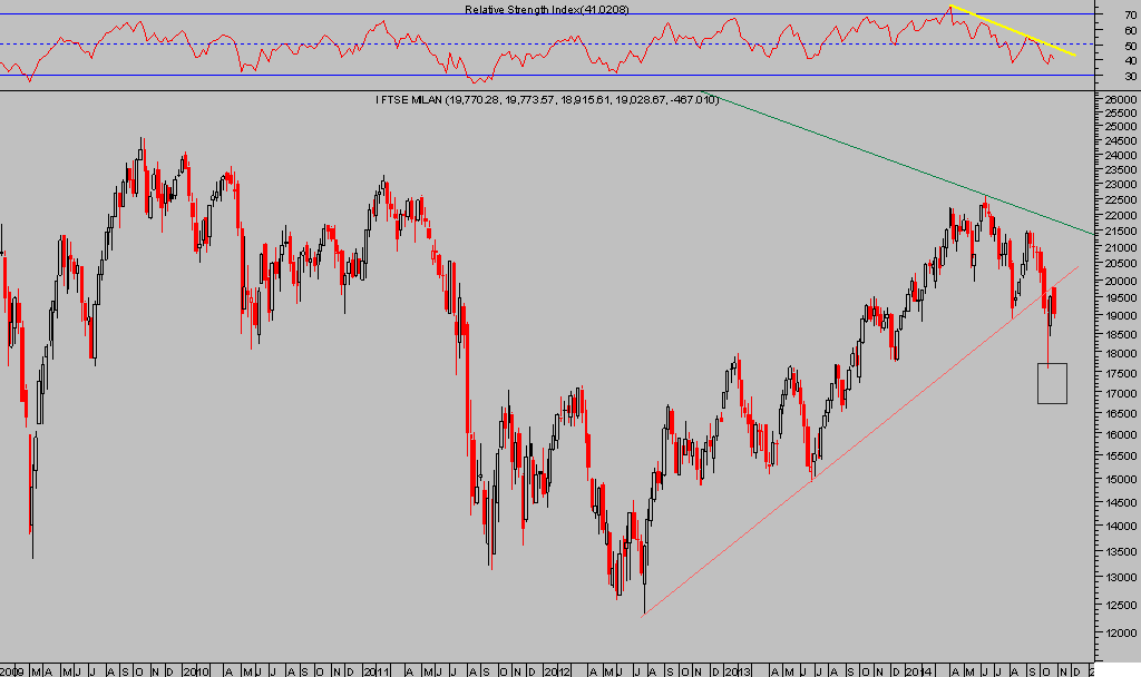 El índice de la Bolsa de Milán corrigió duramente desde una zona, por otra parte, técnicamente complicada de superar y tras un rango intradiario del 4.34%.