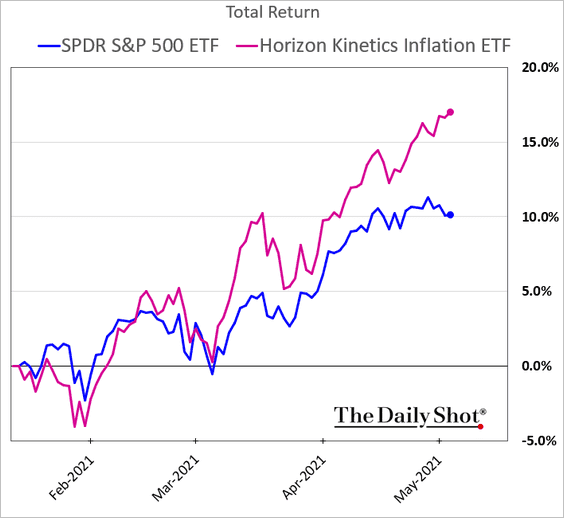 Los inversores toman buena nota de los acontecimientos en términos de precios y expectativas, primero fueron los Bond Vigilantes, como de costumbre son los primeros en anticipar grandes cambio macro y comenzaron a reaccionar hace un año, ahora también los inversores en acciones prefieren comprar activos de renta variable con mejor capacidad de desenvolverse en entornos inflacionistas.