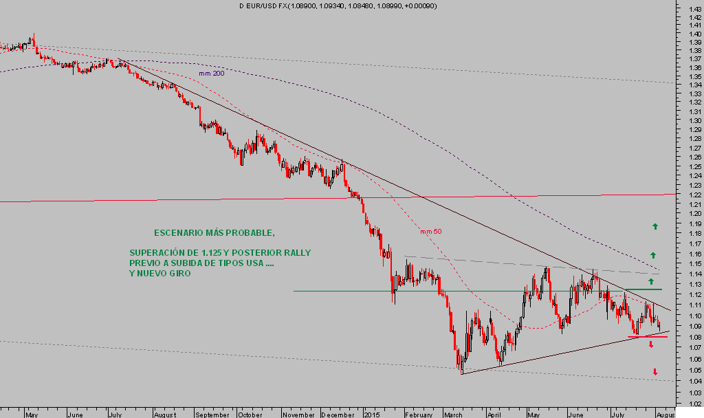 El escenario técnico de mayor probabilidad para el Dólar, en relación con el Euro, es todavía el mismo que el expuesto hace un mes.