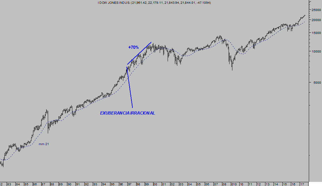 Recordemos las declaraciones de alerta de Alan Greenspan en diciembre de 1996, anunciando ciertos desajustes de valoración que él denominó «exuberancia irracional»: