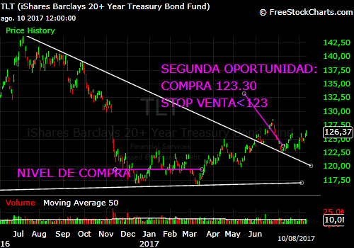 La estrategia más recomendable para inversores sin aversión al riesgo y perfiles conservadores, está orientada a la compra del activo refugio -bono USA-. El binomio rentabilidad riesgo es inmejorable, y la estrategia ya acumula interesante rentabilidad, vean indicaciones de la estrategia en el gráfico siguiente: