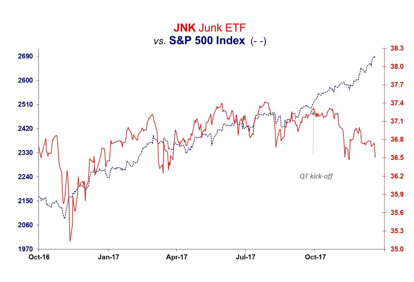 El universo de compañías consideradas de deuda basura -JUNK- comenzó hace unas semanas a anticipar las medidas fiscales y a sufrir una tendencia vendedora que ha generado una interesante divergencia.