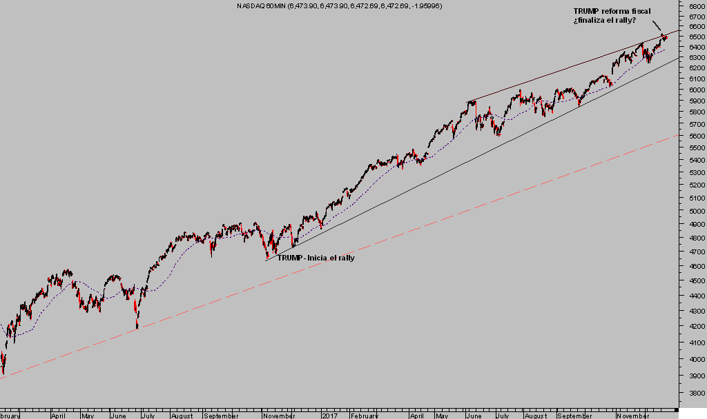 Curiosamente, Trump insinúa ahora que la bolsa tiene gran recorrido, cuando estando en campaña electoral afirmaba que el mercado se encontraba en situación de burbuja «big, fat, ugly bubble».