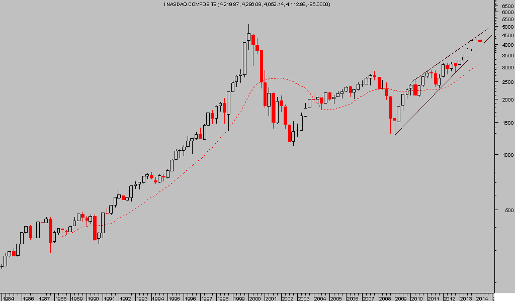 El año 2008 resultó devastador para los mercados financieros, el Nasdaq concretamente perdió un 40%. Este 2014 presenta todos los factores típicos para la formación de un techo de mercado importante.