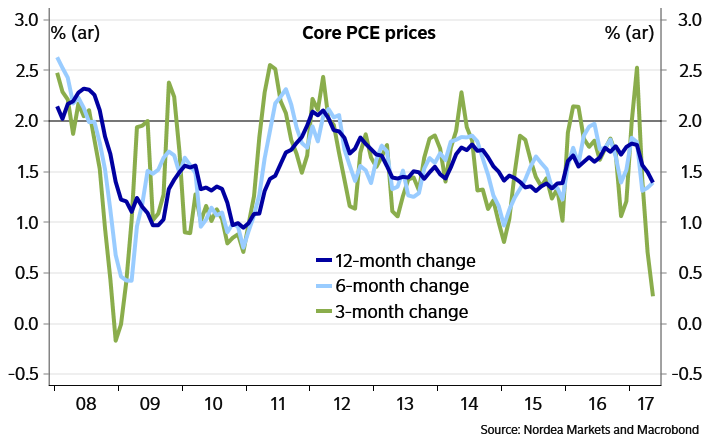 El futuro del sector, así como el de otros muchos ligados al consumo, se presenta contrario en un entorno de fragilidad acusada de la economía, vean la evolución, con el último dato publicado la semana pasada, de Personal Consumption Expenditures.