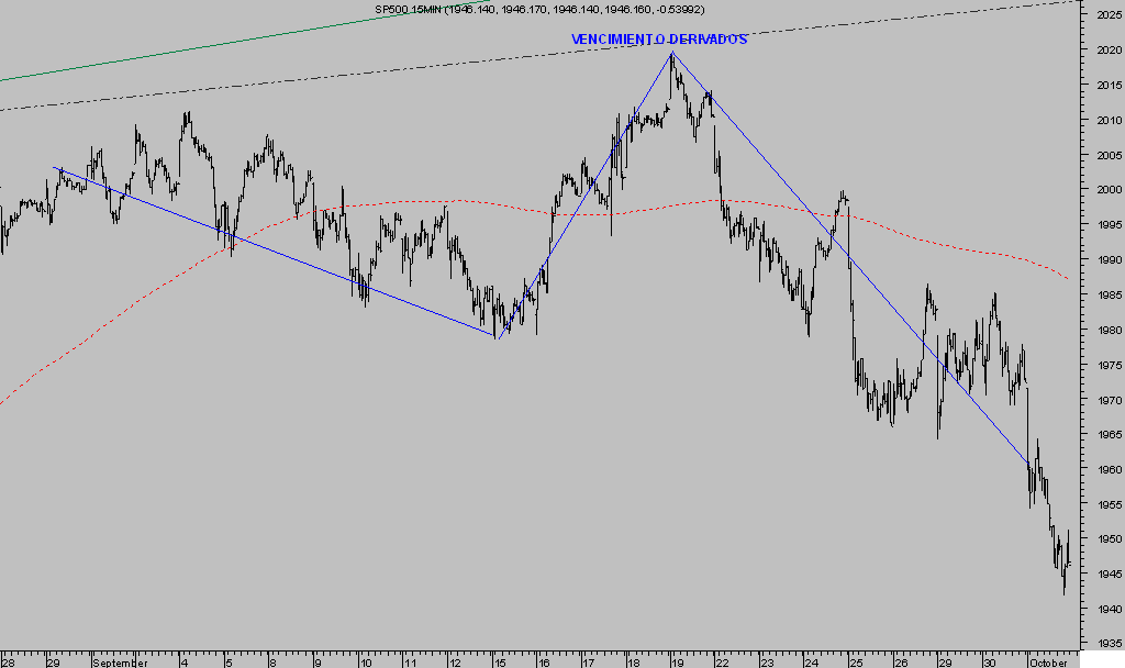 La pauta de final de mes ha sido respetada por el mercado en los últimos compases de septiembre, hasta que ayer día 1 de octubre se rompió bruscamente tras experimentar los grandes índices USA una severa caída superior al punto porcentual.