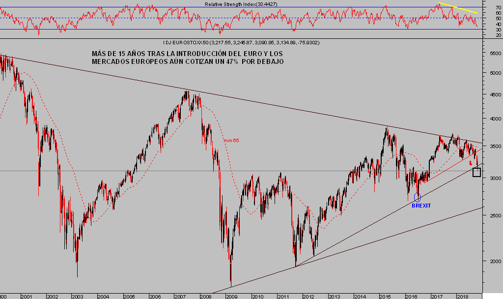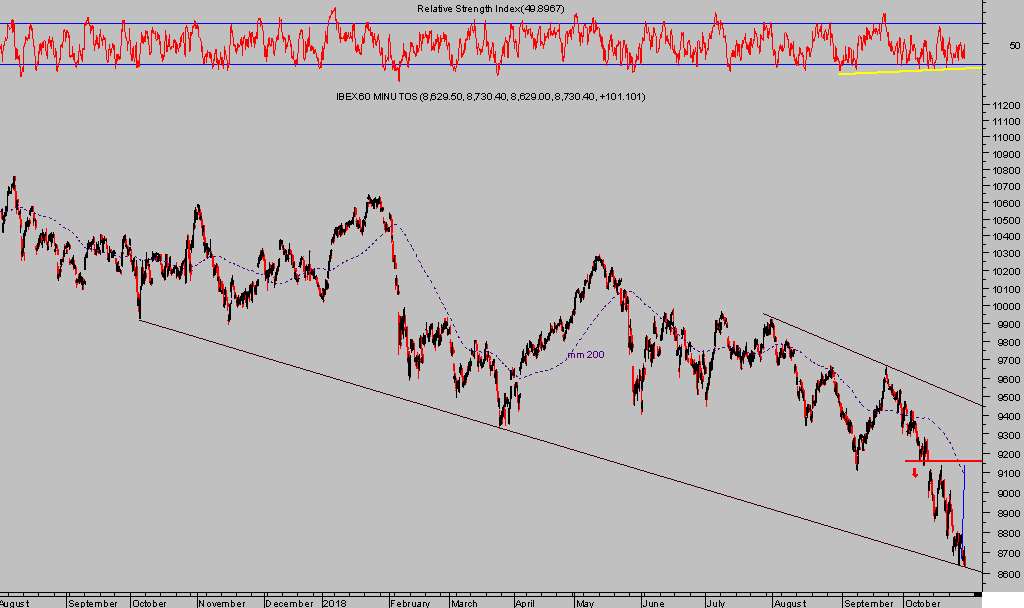 El mercado europeo ha sido castigado bastante más acusadamente que el americano, el Eurostoxx, DAX o IBEX han alcanzado referencias técnicas de control muy importantes.