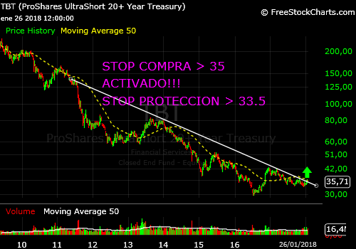 Alzas de tipos, caída de precio de los bonos, que rentabilizaremos mediante el uso de la siguiente estrategia elaborada sobre un ETF inverso con símbolo TBT y de muy sencilla aplicación.