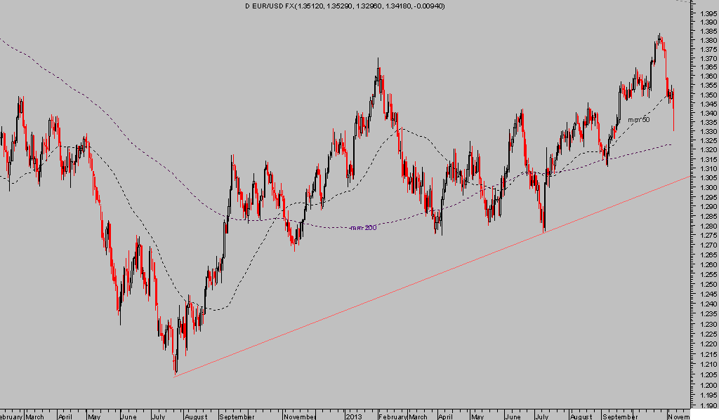 De ahí que tras la decisión «NO TAPER» de la Reserva Federal, el EURO se revalorizase tanto y BCE se ha visto obligado a responder con el recorte de tipos de ayer.