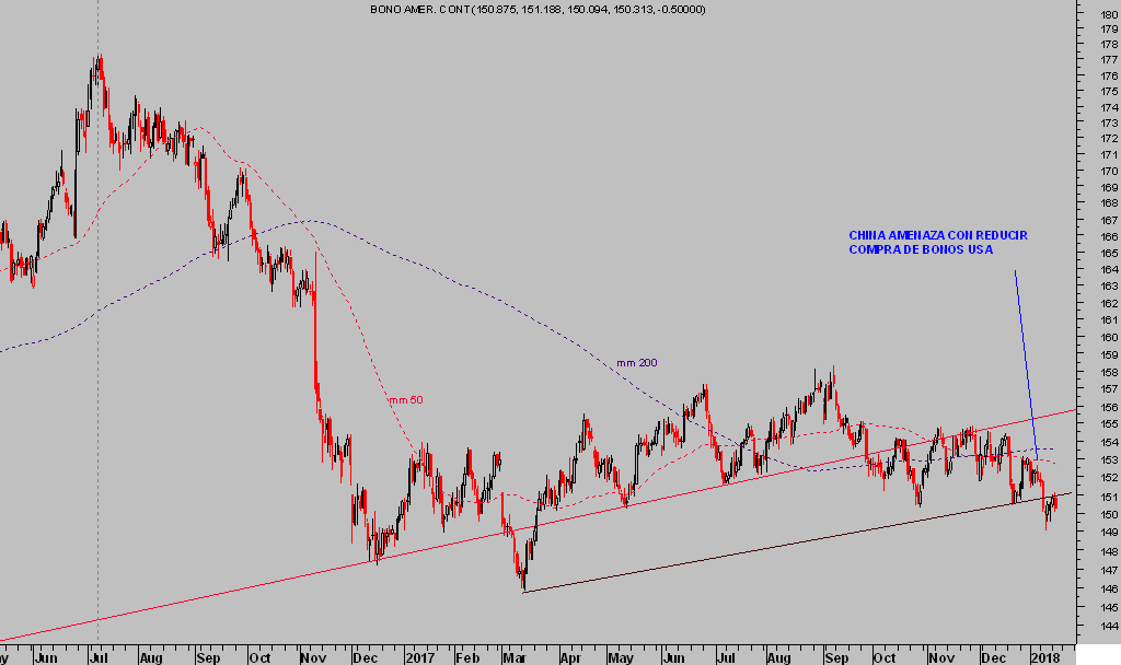 Cuestión respondida desde china indicando que se plantean la posibilidad de reducir sus reservas en deuda USA, lo que se trasladó inmediatamente al mercado de bonos con ventas y caídas de precio.